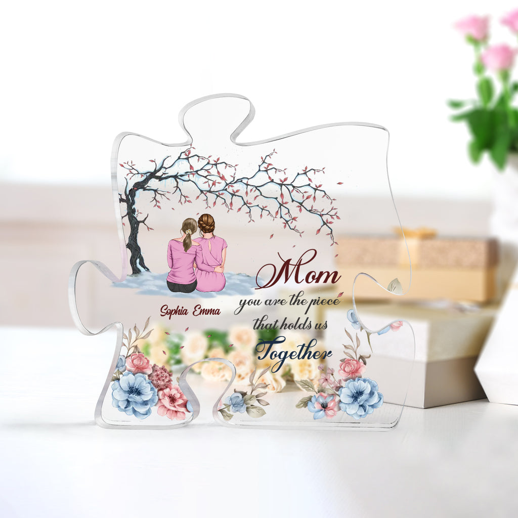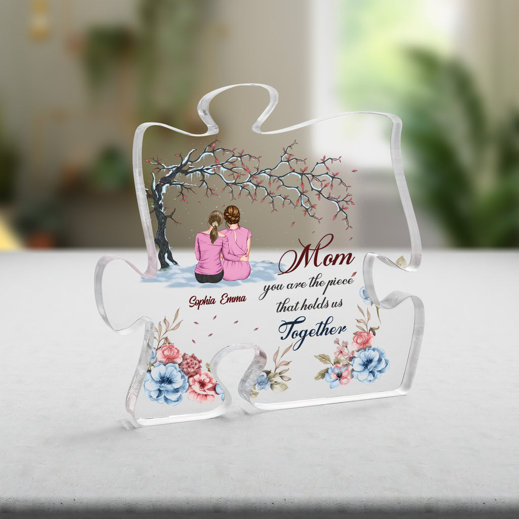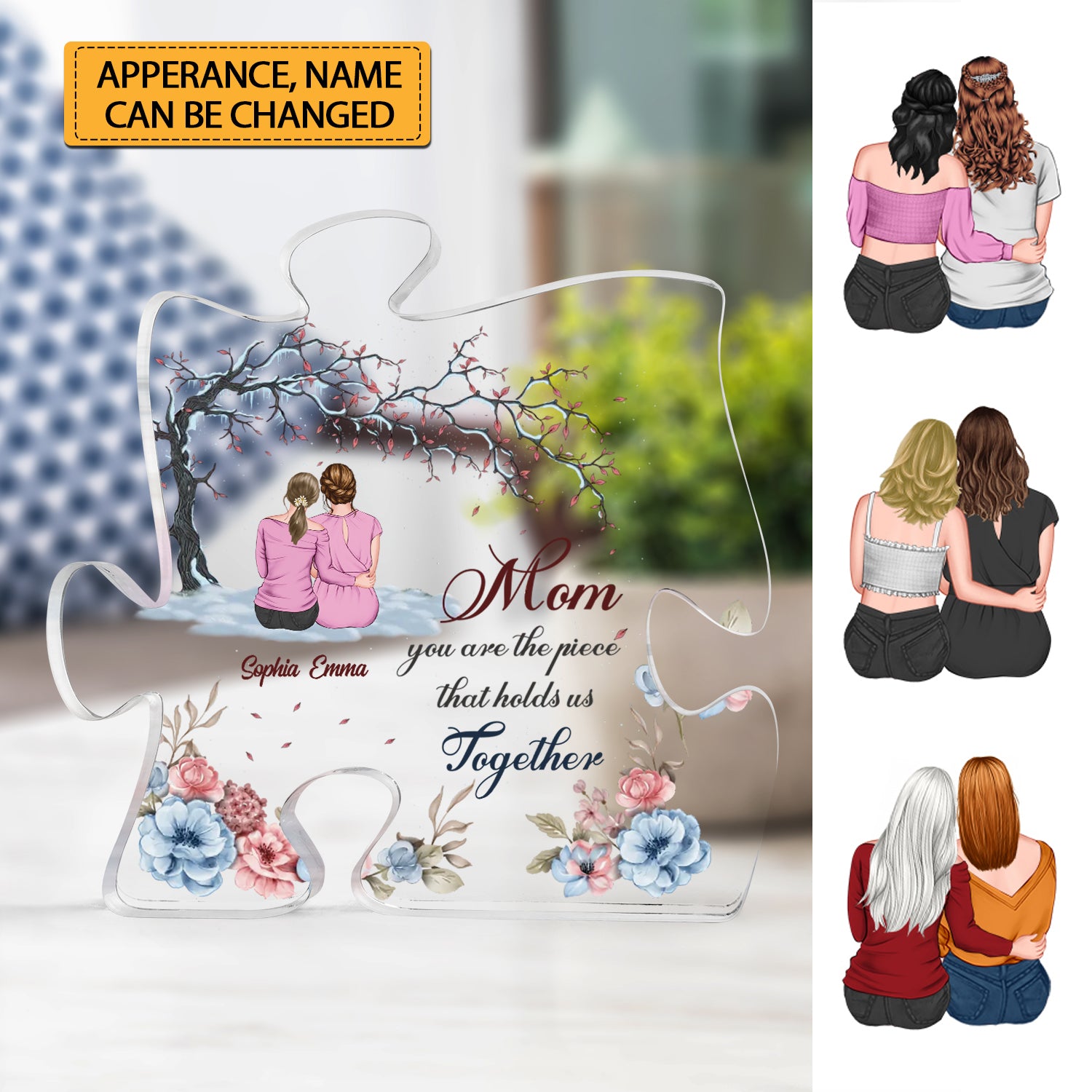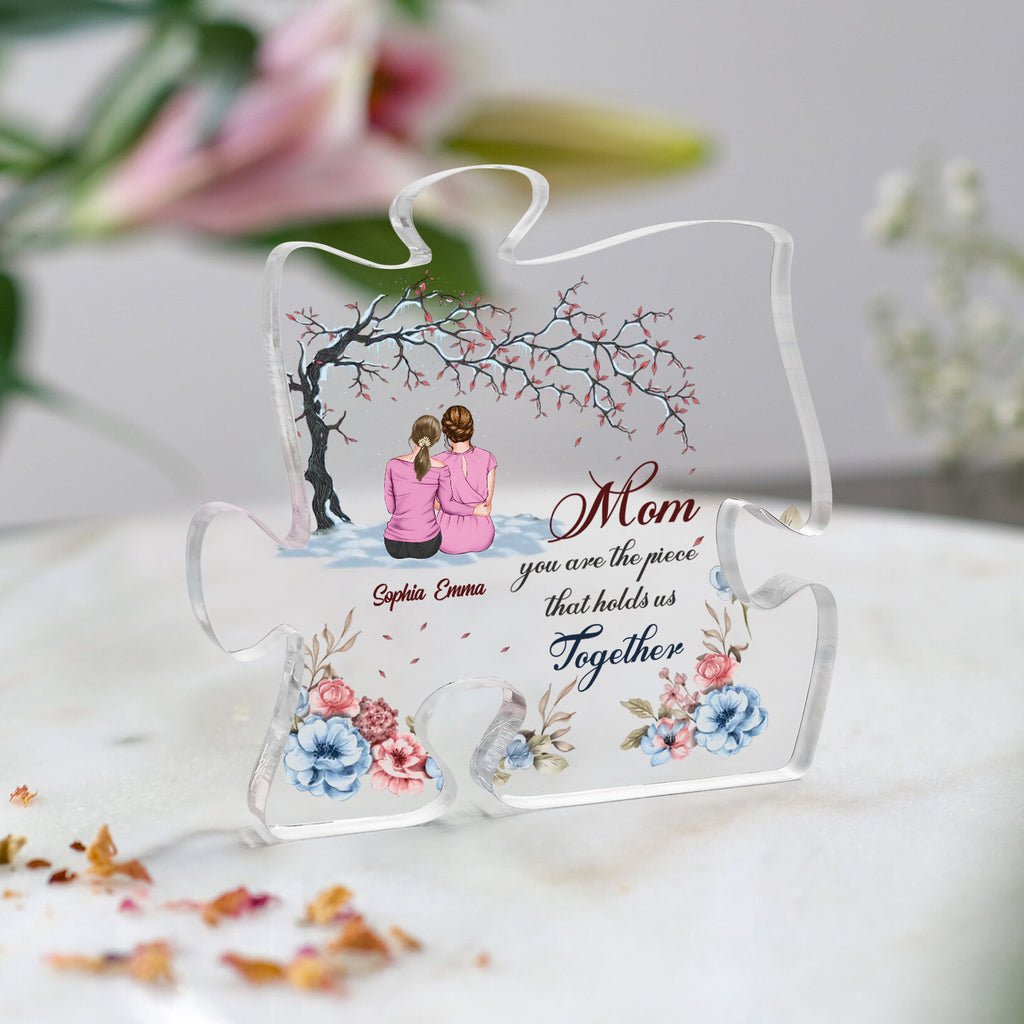 Mom You Are The Piece That Holds Us Together - Custom Appearances And Texts - Personalized Puzzle Shaped Acrylic Plaque - Gift For Family