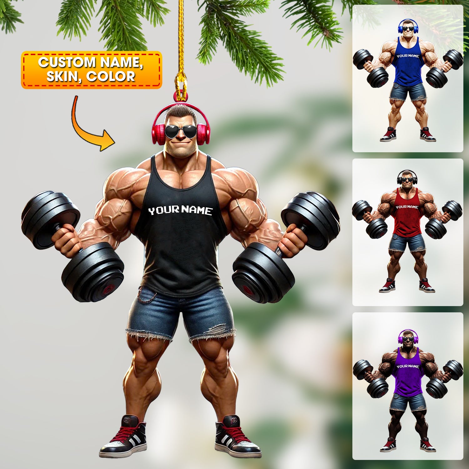 Muscle Man Christmas Ornament, Gym Ornament, Personalized Ornament, Gymnastics Christmas Gift