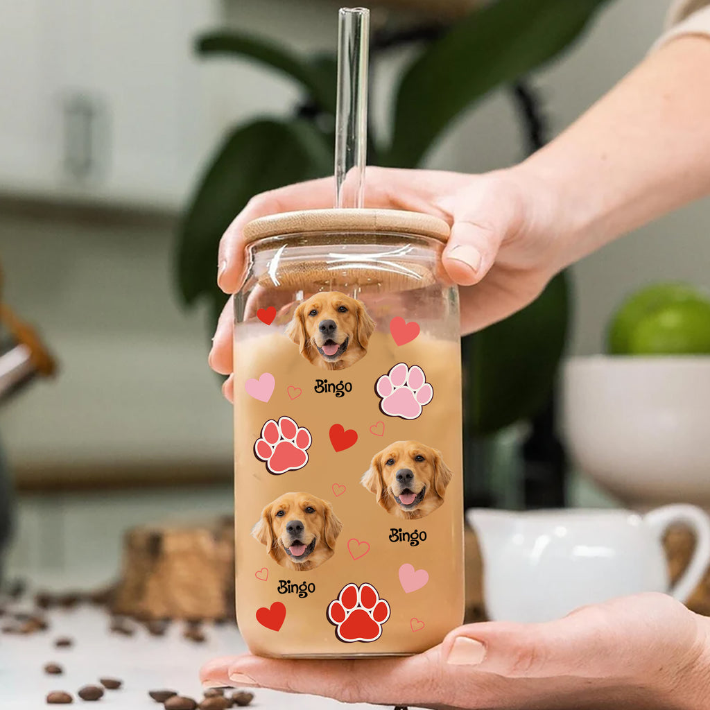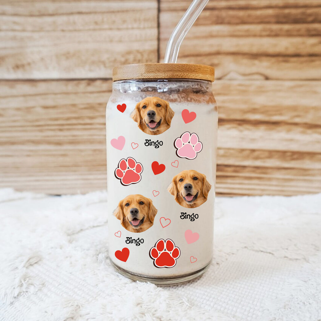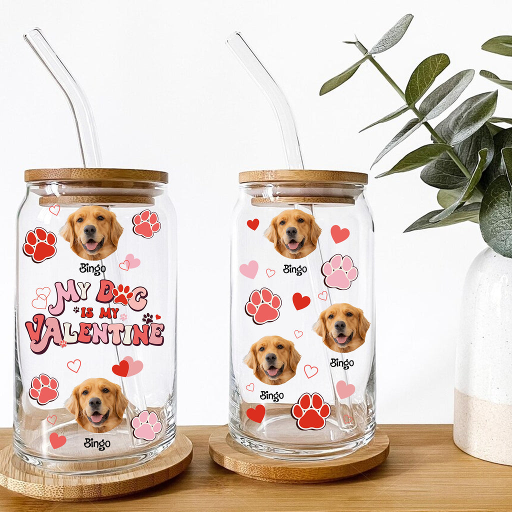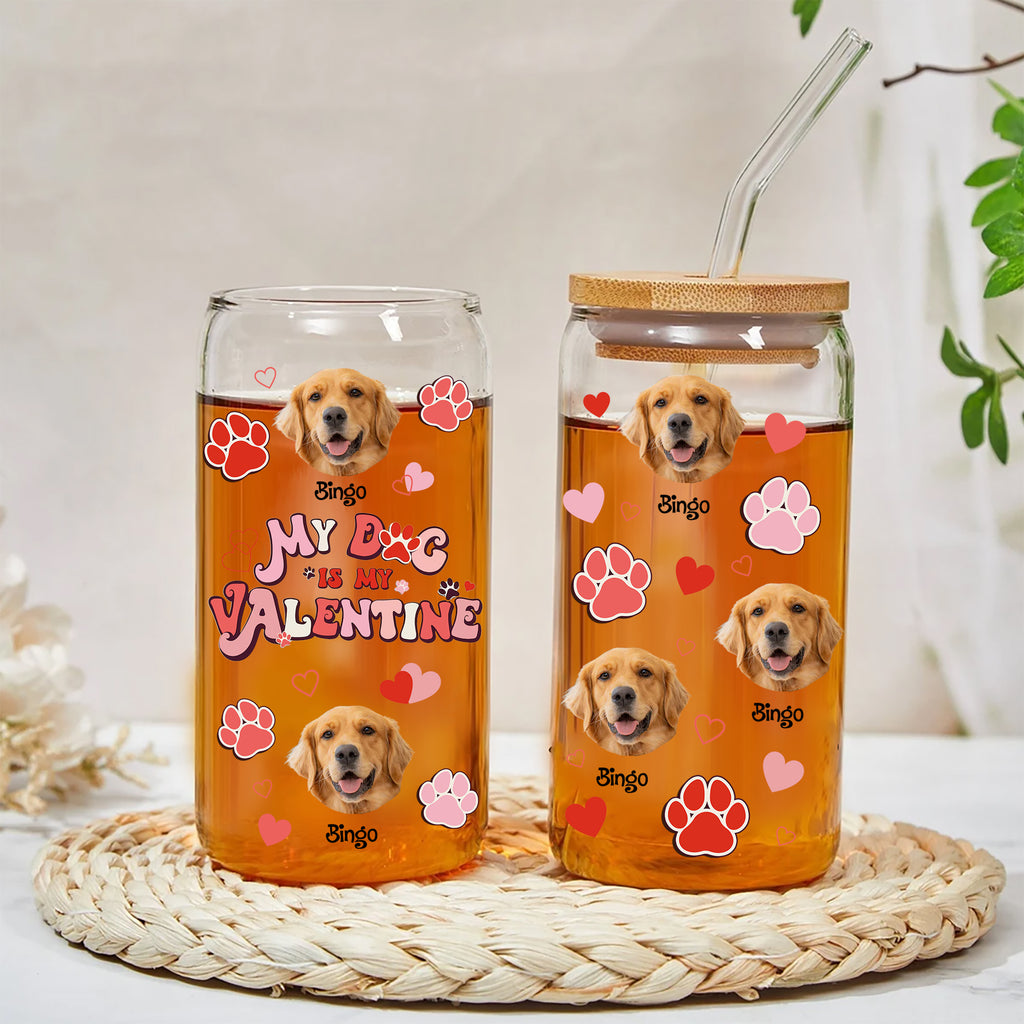 My Dog Is My Valentine - Cutie Puppy - Custom Photo And Name - Personalized Glass Bottle, Frosted Bottle, Gift For Pet Lover