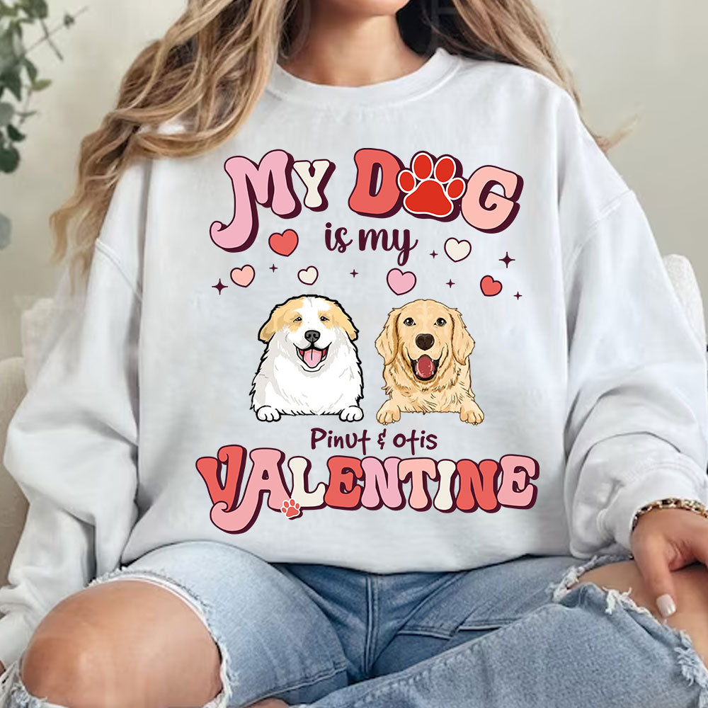 My Dog Is My Valentine, Gift For Pet Lover, Custom Pets And Names - Personalized Sweatshirt