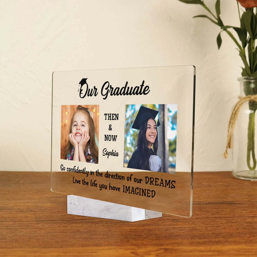 Our Graduate Then And Now, Custom Photos And Names - Personalized Acrylic Plaque
