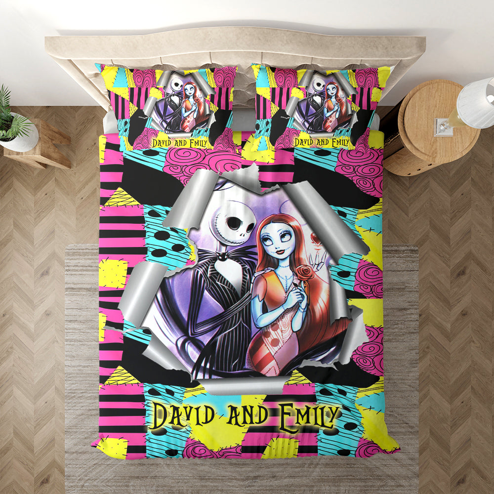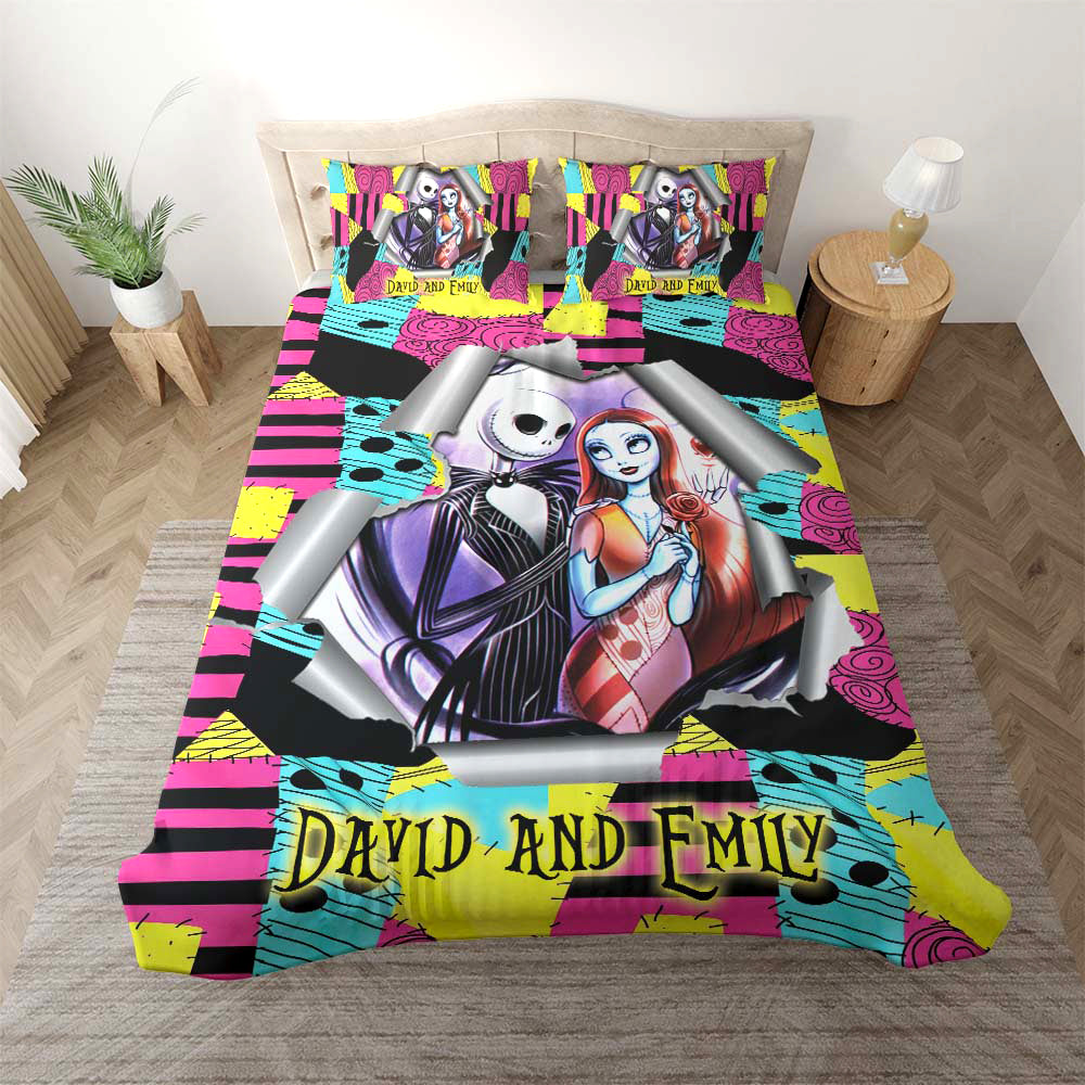 Personalized Bed Set Nightmare Before Christmas For Couple - Custome Name - Personalized Bedding Set