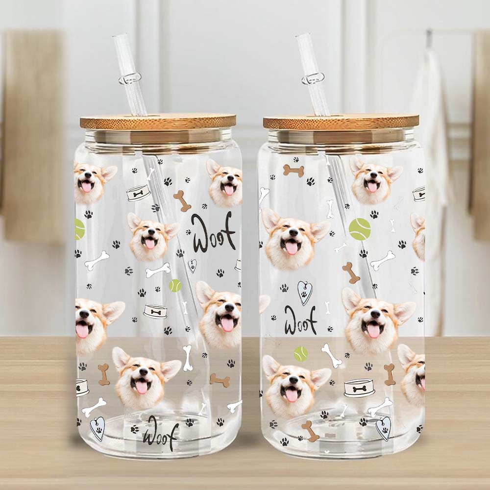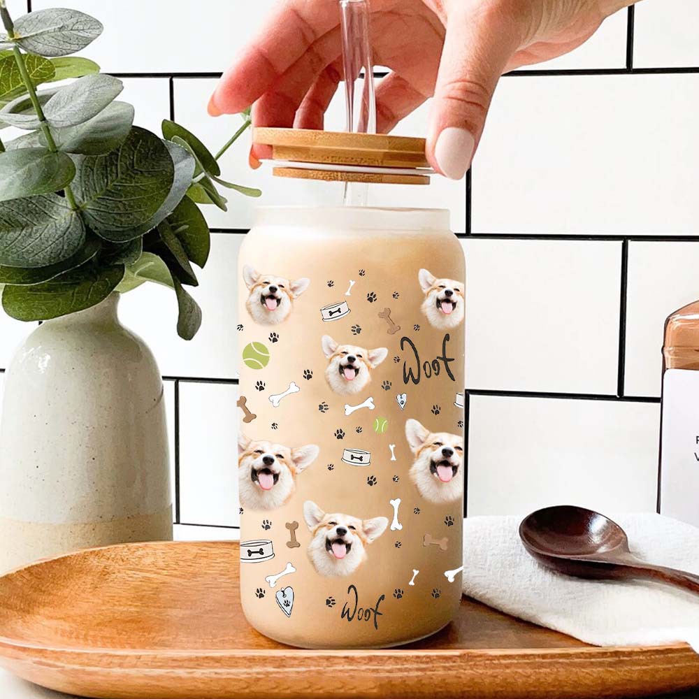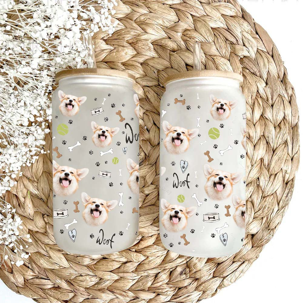 Personalized Dog Lover Can Glass, Custom Photo Glass Bottle, Frosted Bottle