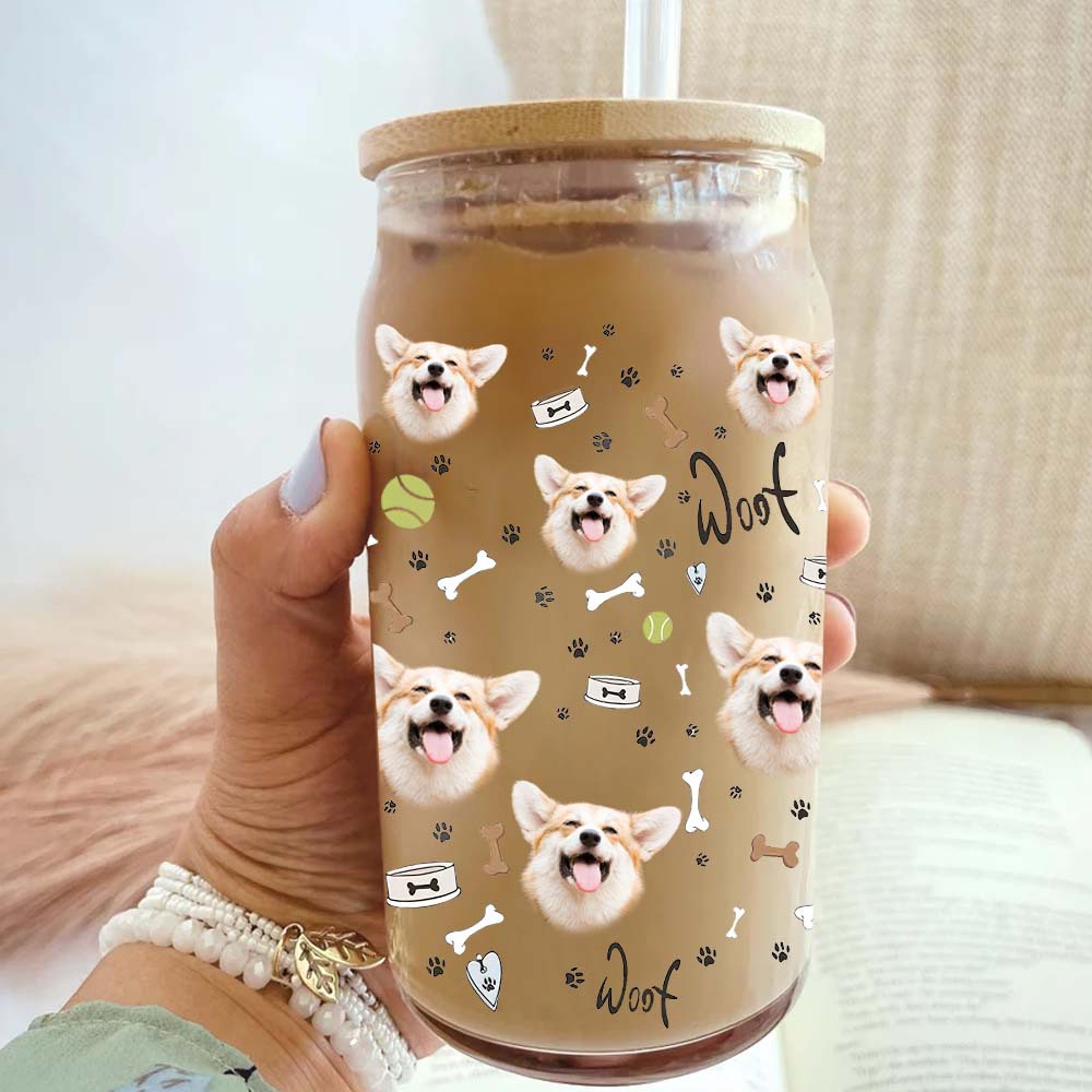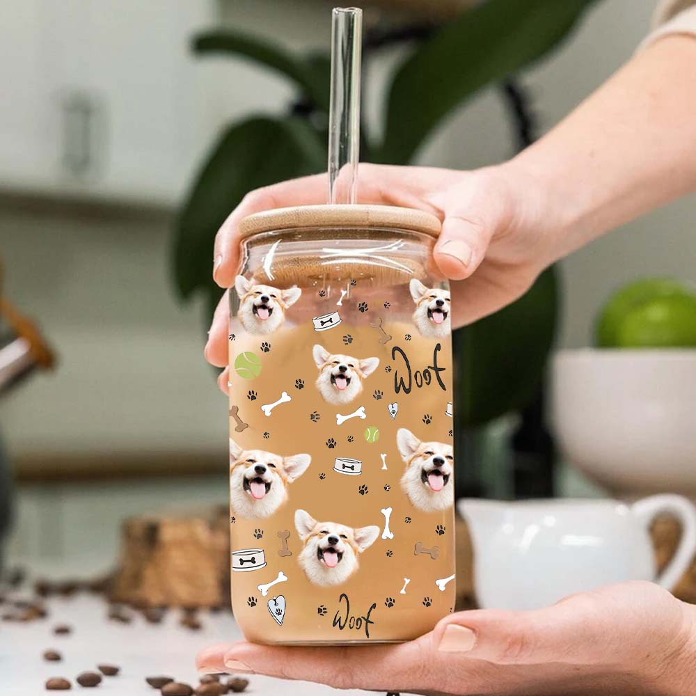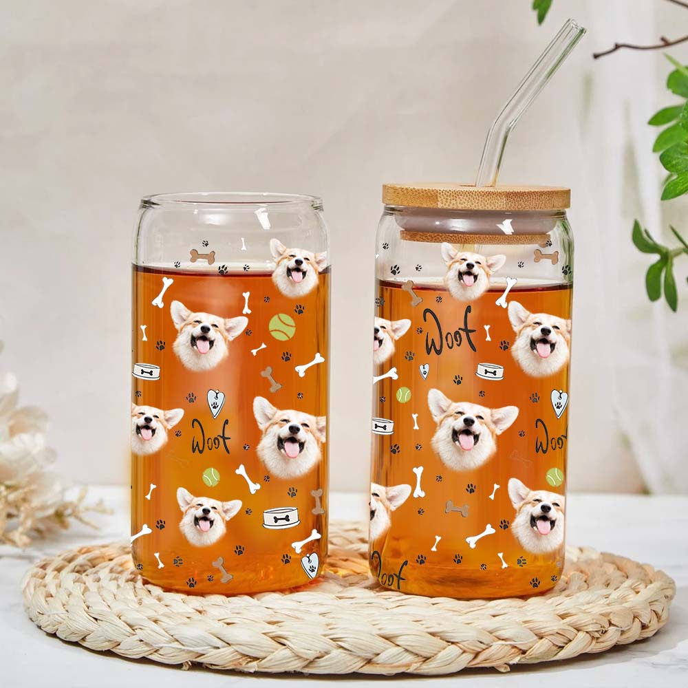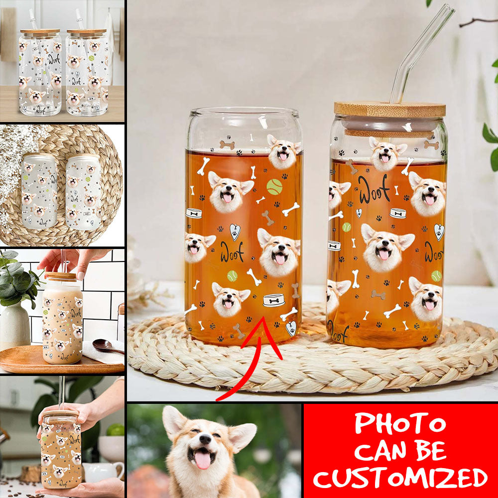 Personalized Dog Lover Can Glass, Custom Photo Glass Bottle, Frosted Bottle