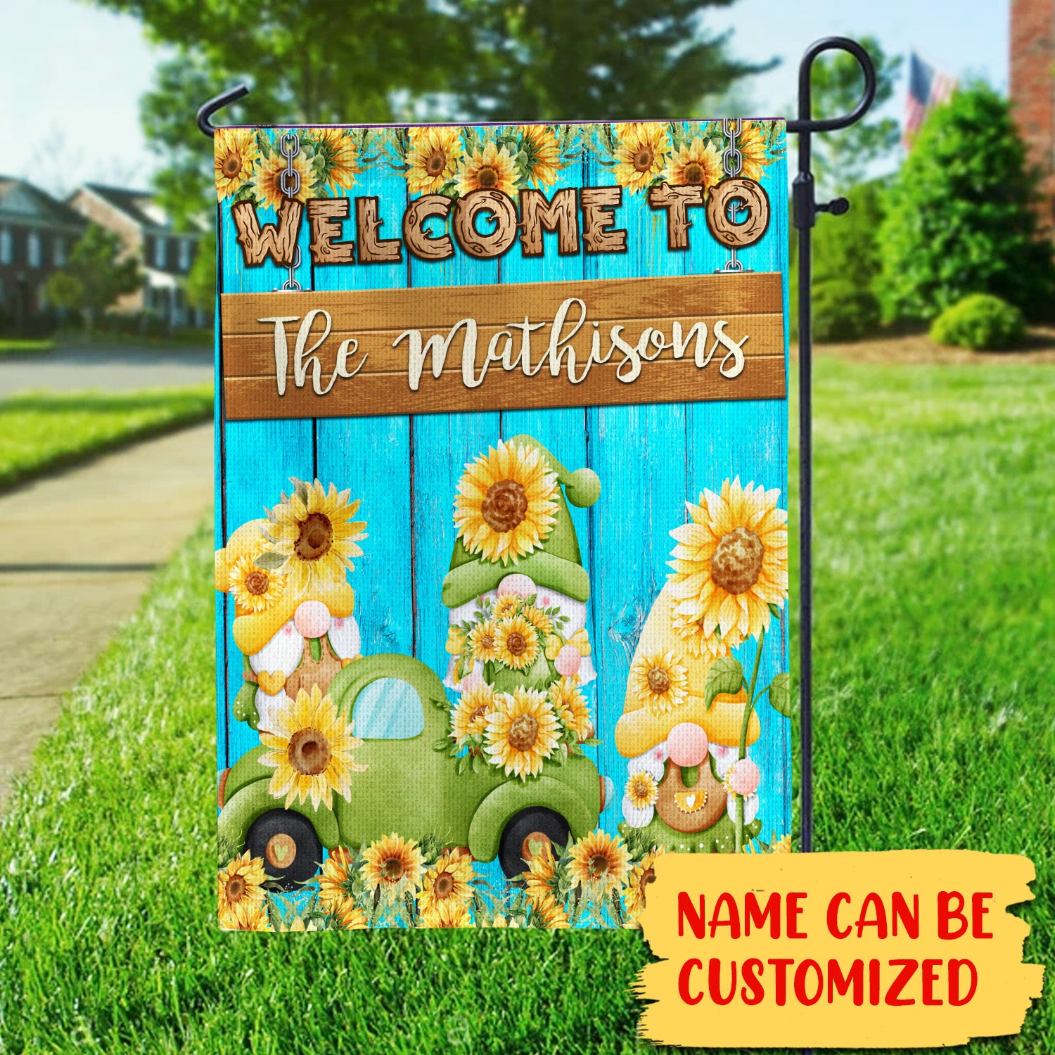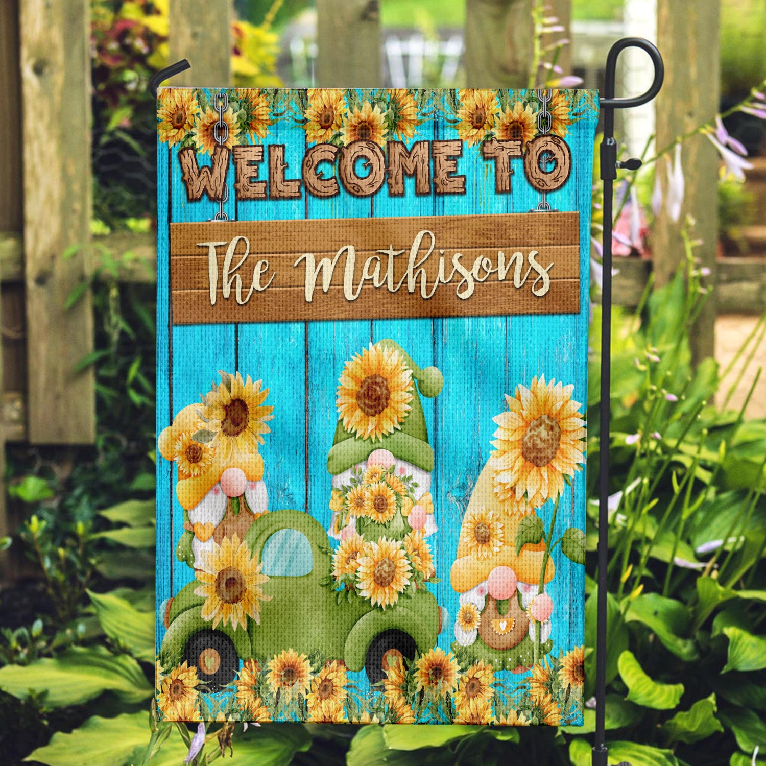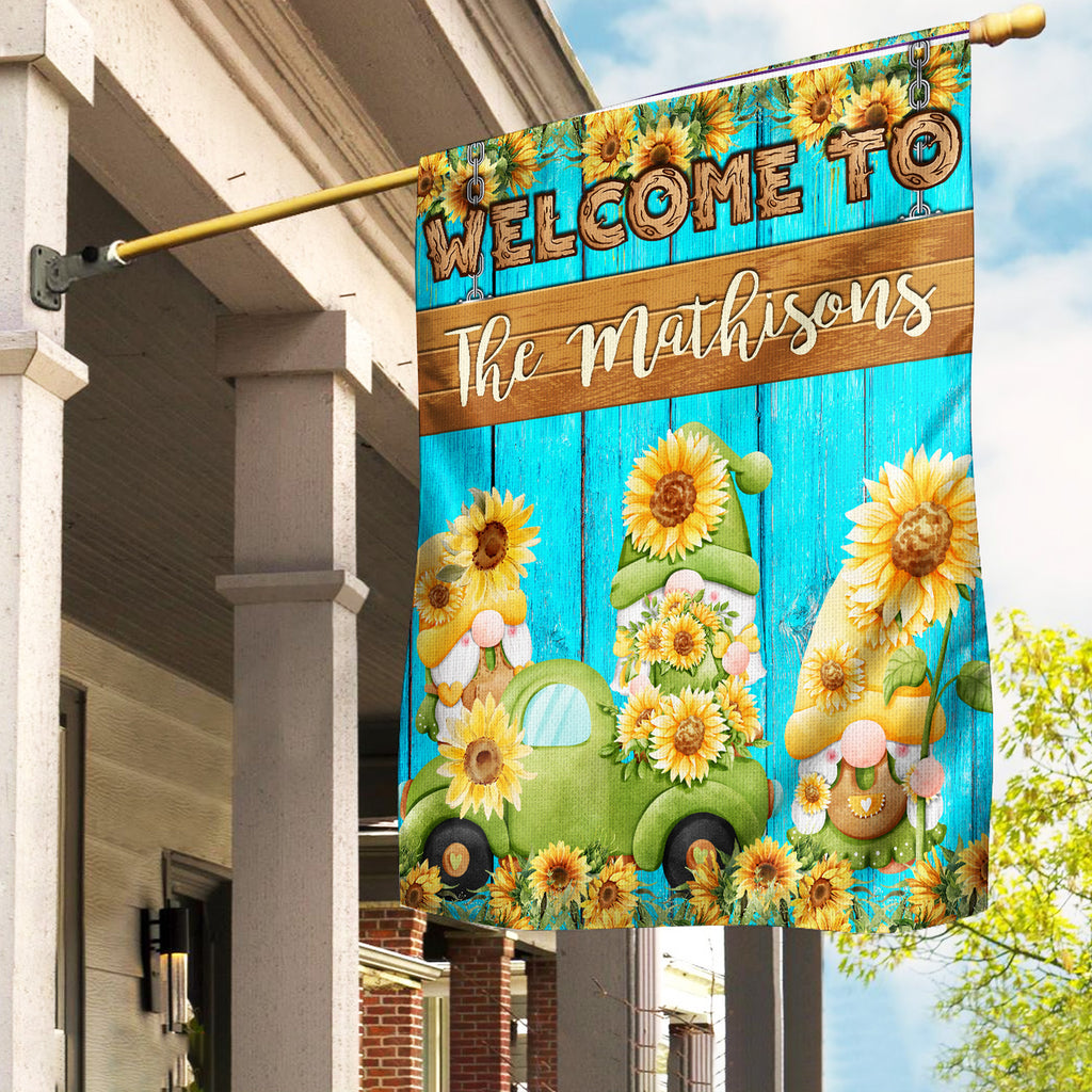 Personalized Welcome Garden Flag, Sunflower Home Garden Flag with Custom Name
