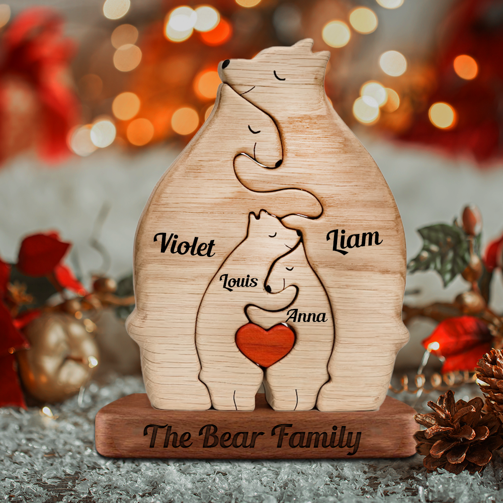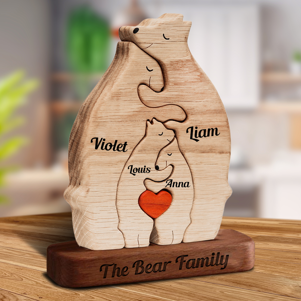 Personalized Wooden Bears Family - Puzzle Wooden Bears Family - Wooden Pet Carvings