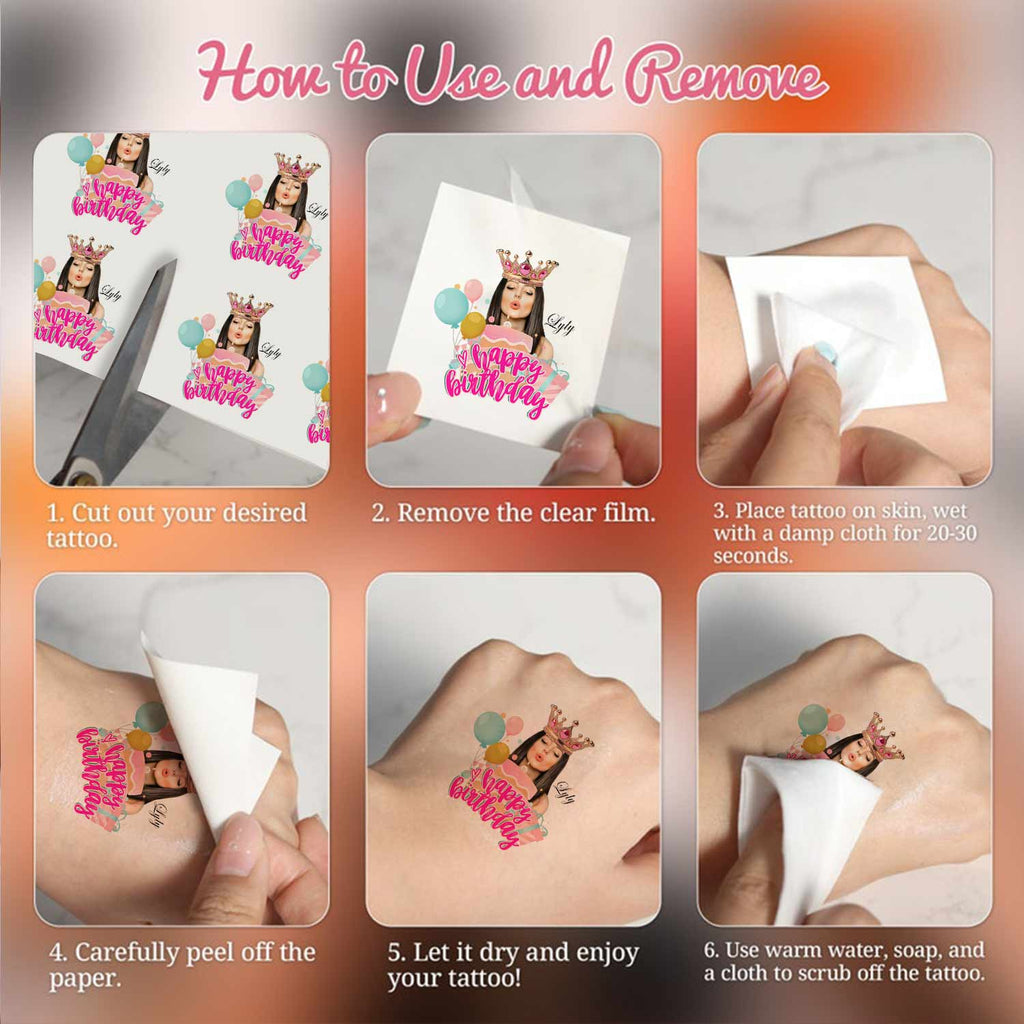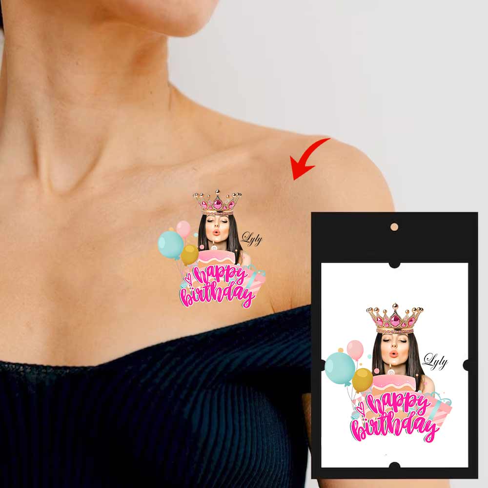 Queen Party Tattoo Birthday, Custom Photo And Texts Temporary Tattoo, Personalized Tattoo, Fake Tattoo