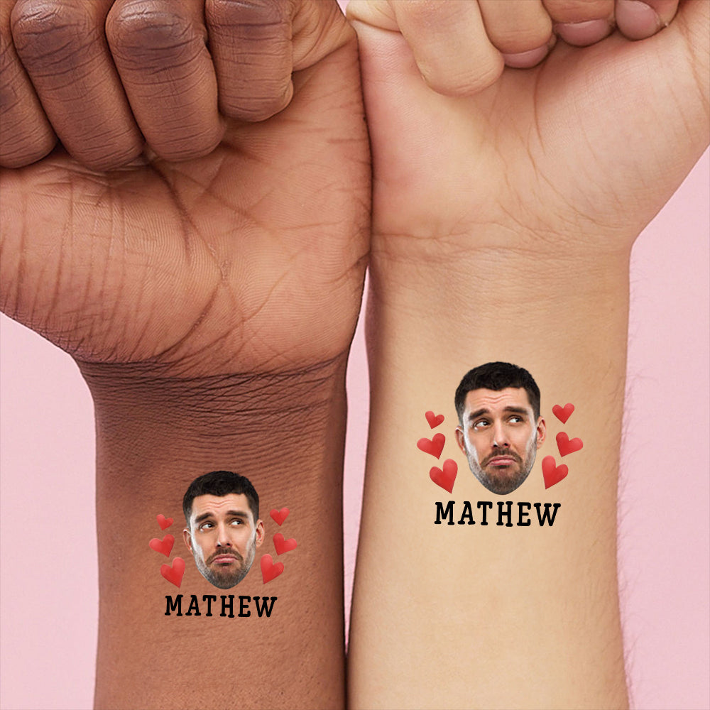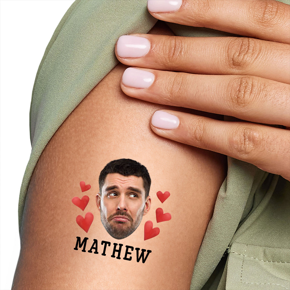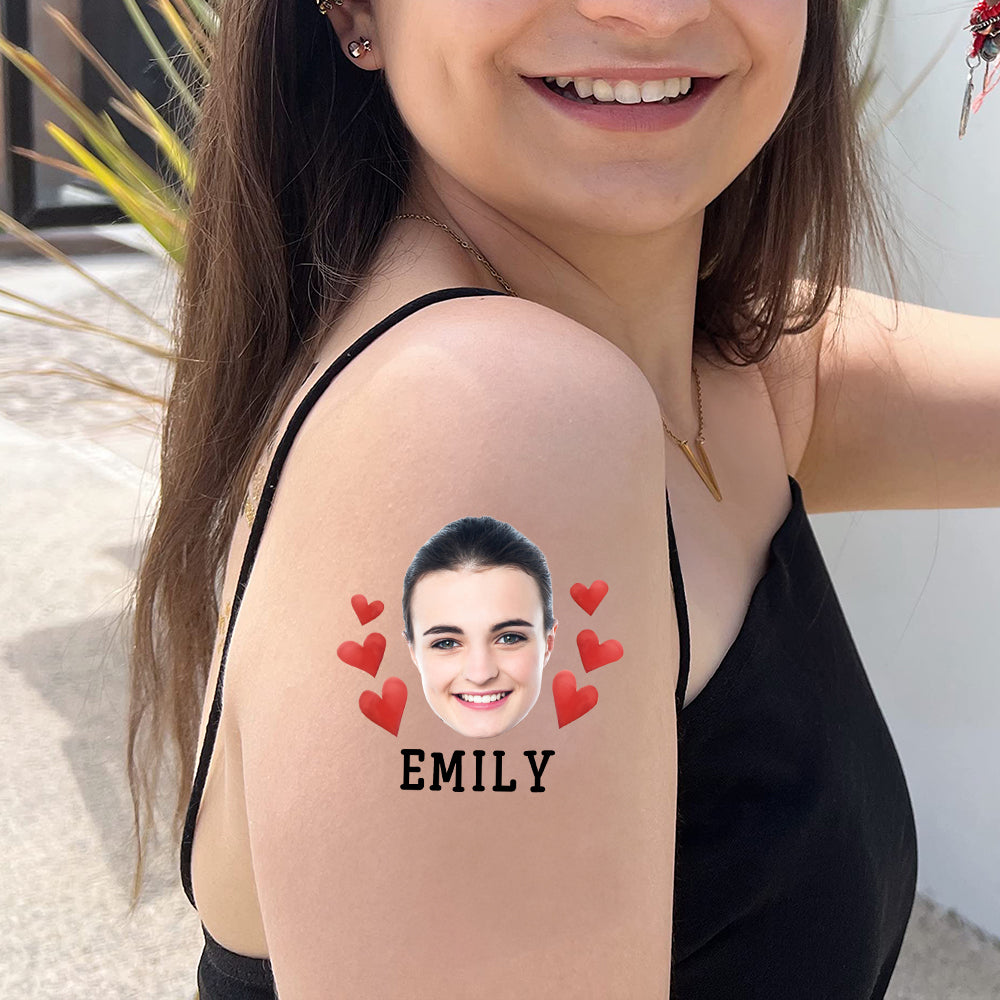 Red Hearts, Custom Face Photo And Texts Temporary Tattoo, Personalized Party Tattoo, Fake Tattoo