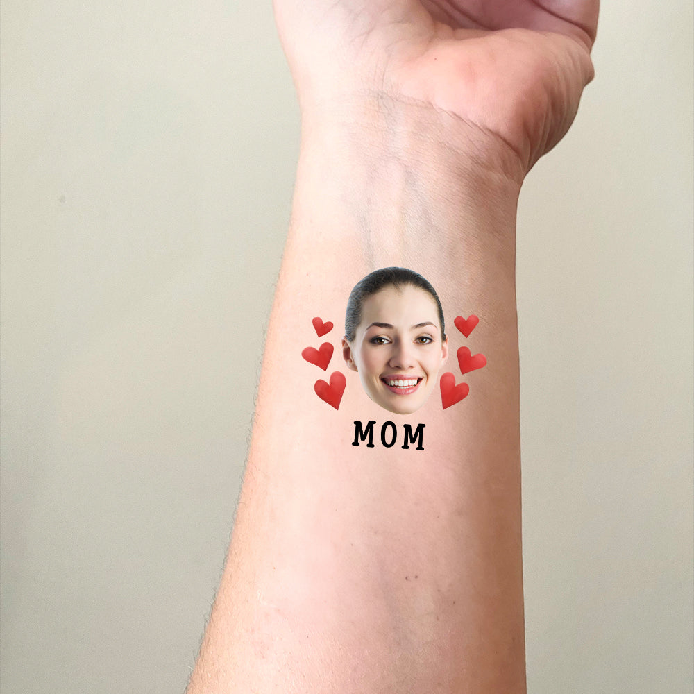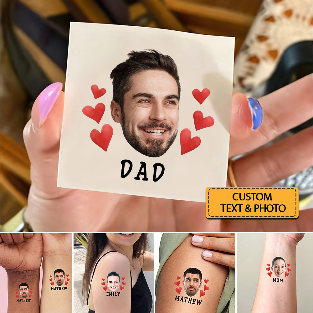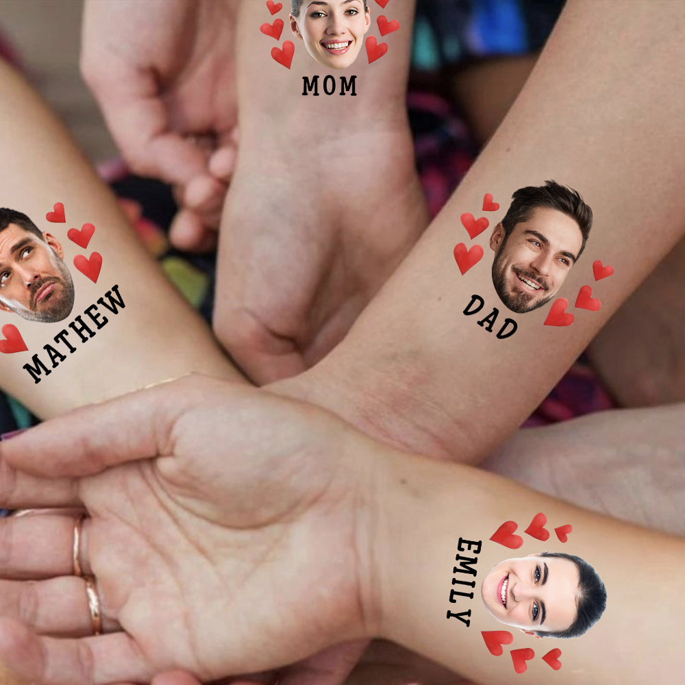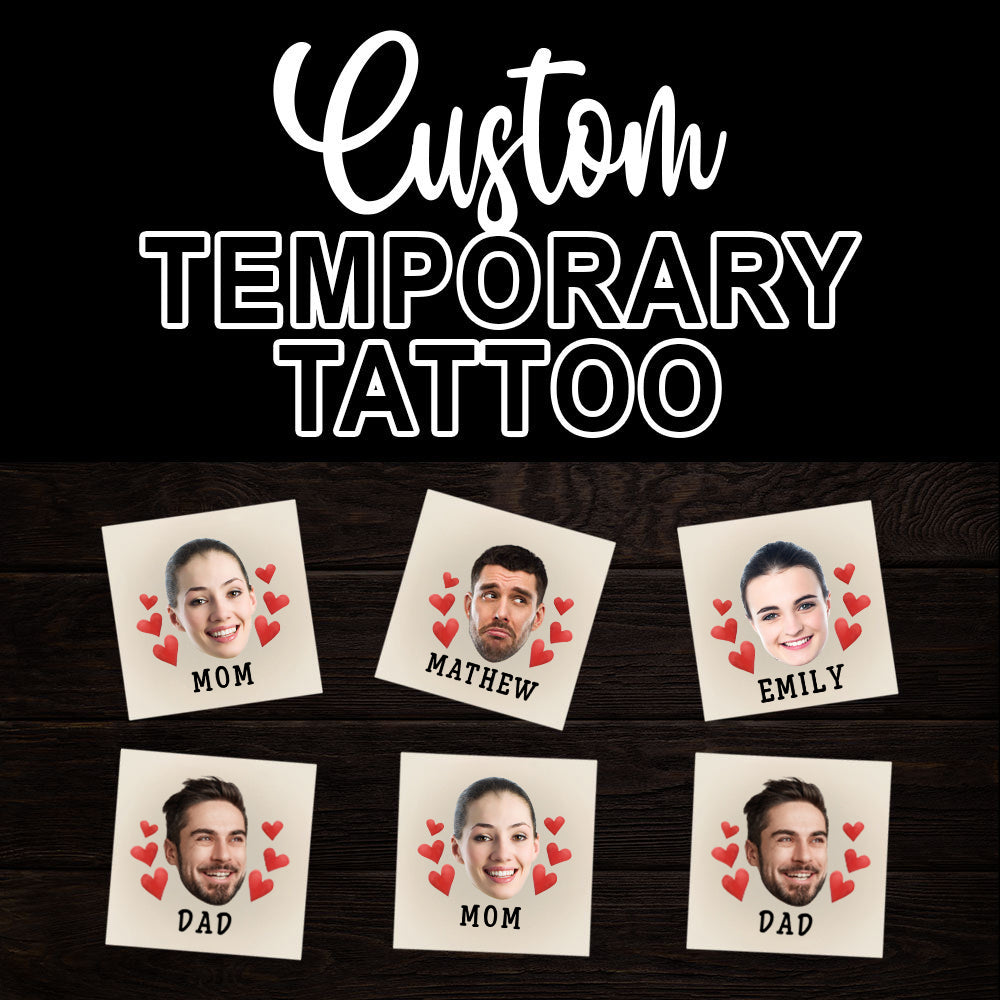 Red Hearts, Custom Face Photo And Texts Temporary Tattoo, Personalized Party Tattoo, Fake Tattoo