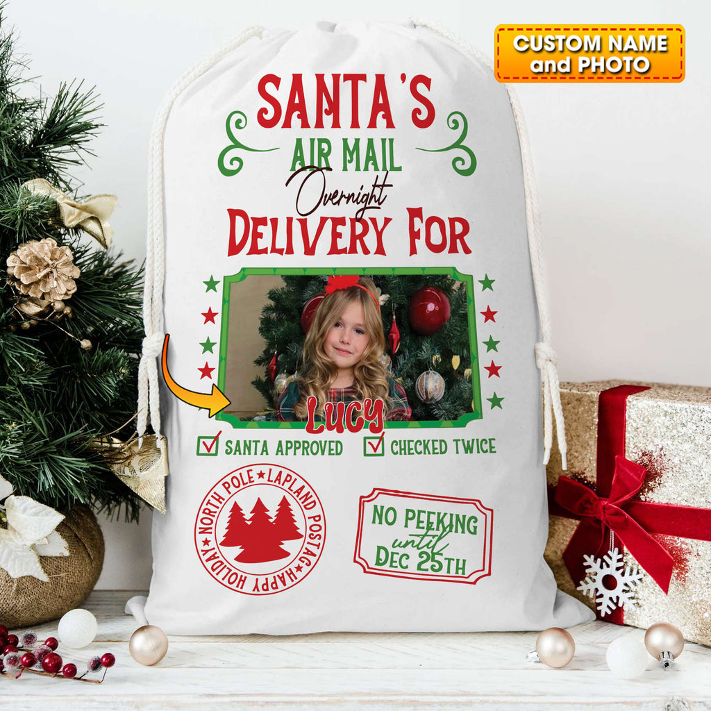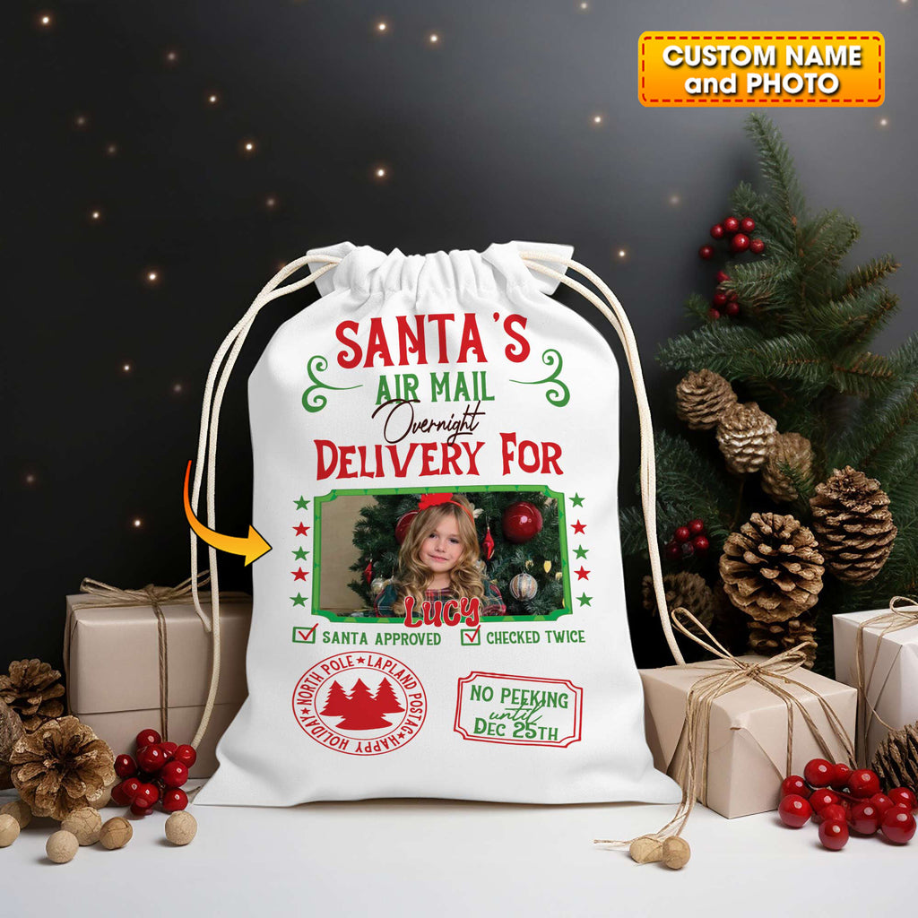 Santa Delivery Custom Photo And Name, Personalized String Bag, Christmas Gift
