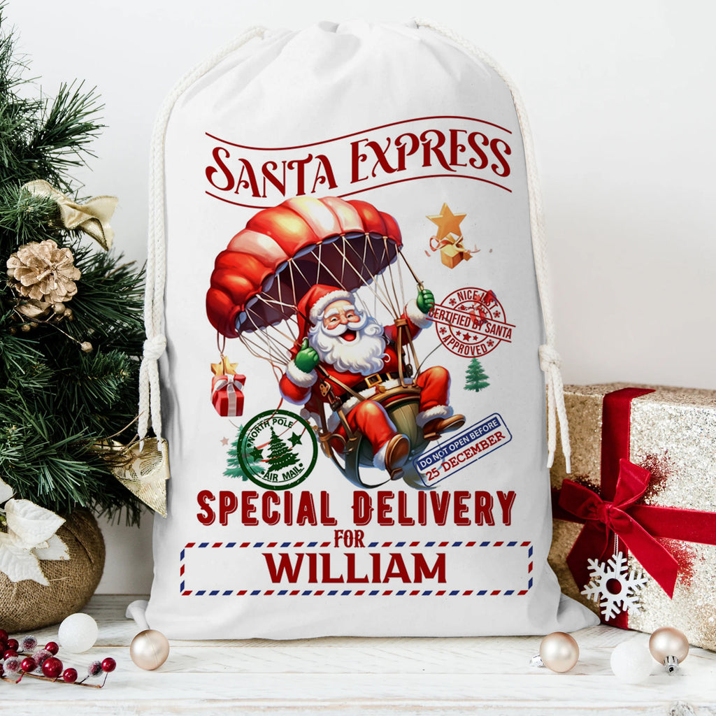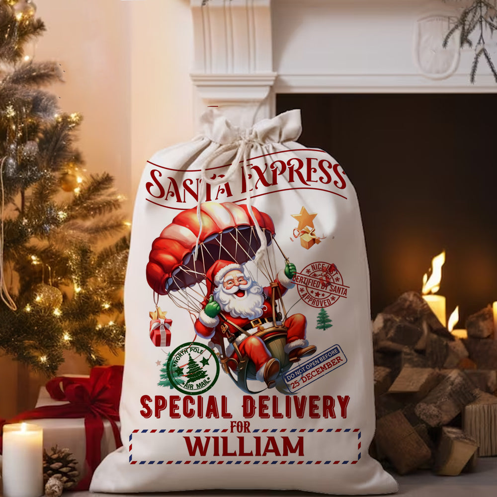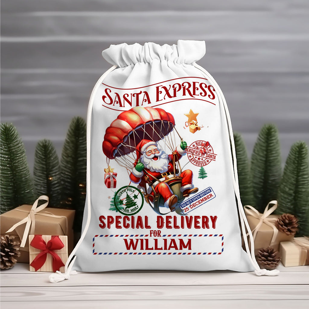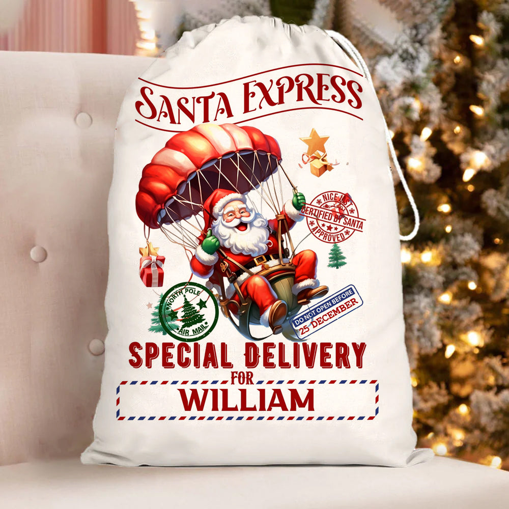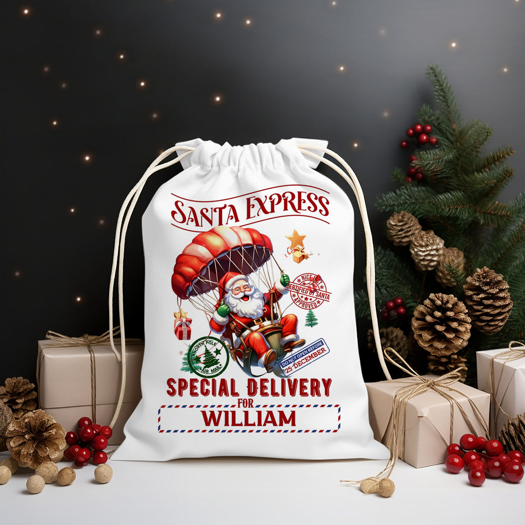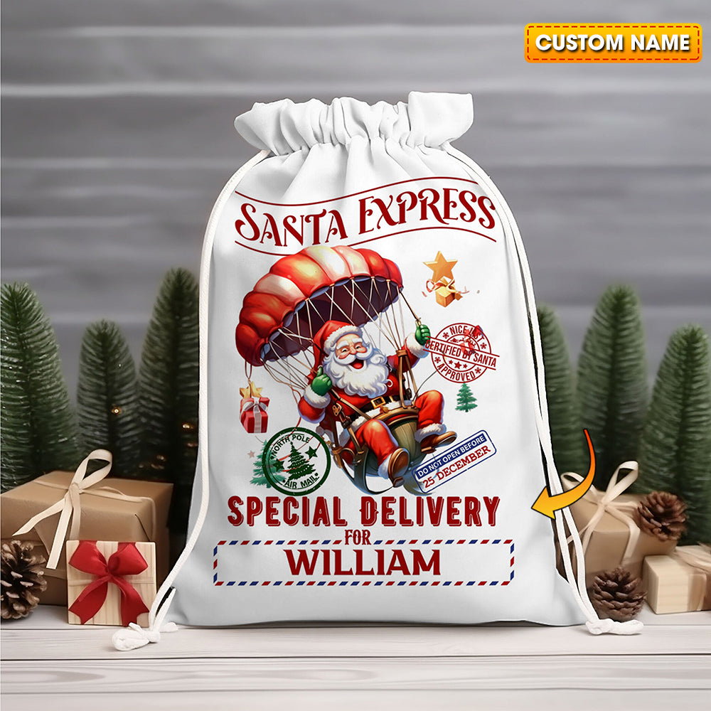Santa Express Special For Custom Text, Personalized String Bag, Christmas Gift