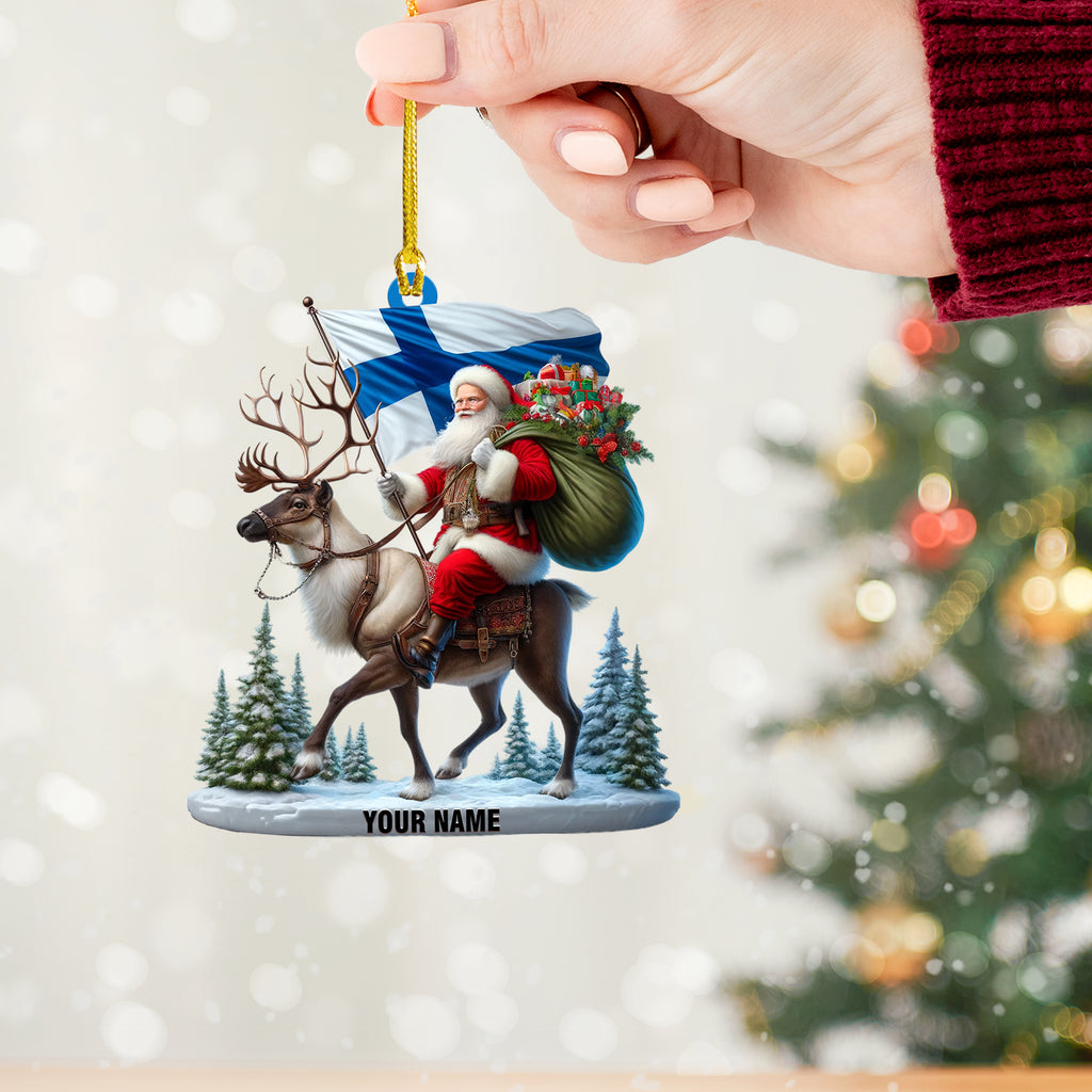 Santa Riding A Reindeer Home Decor Christmas Ornament, Personalized Ornament