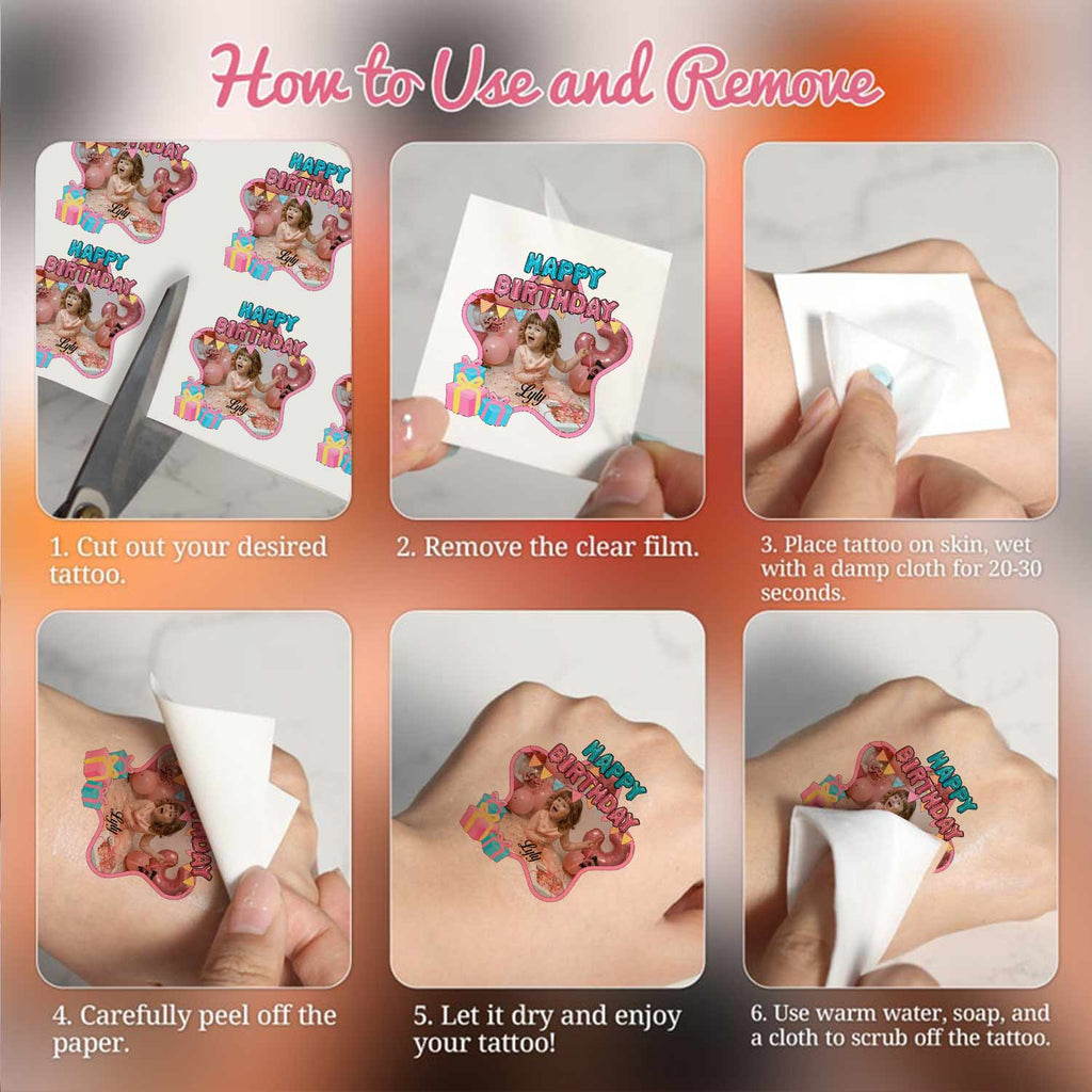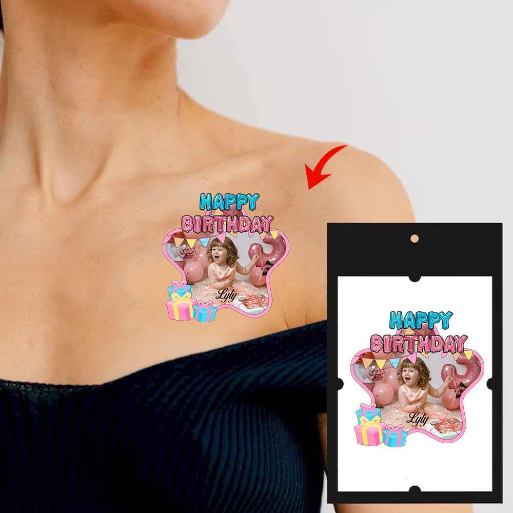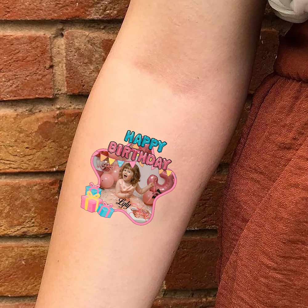 Star Happy Birthday Custom Photo And Text Temporary Tattoo, Personalized Tattoo, Fake Tattoo