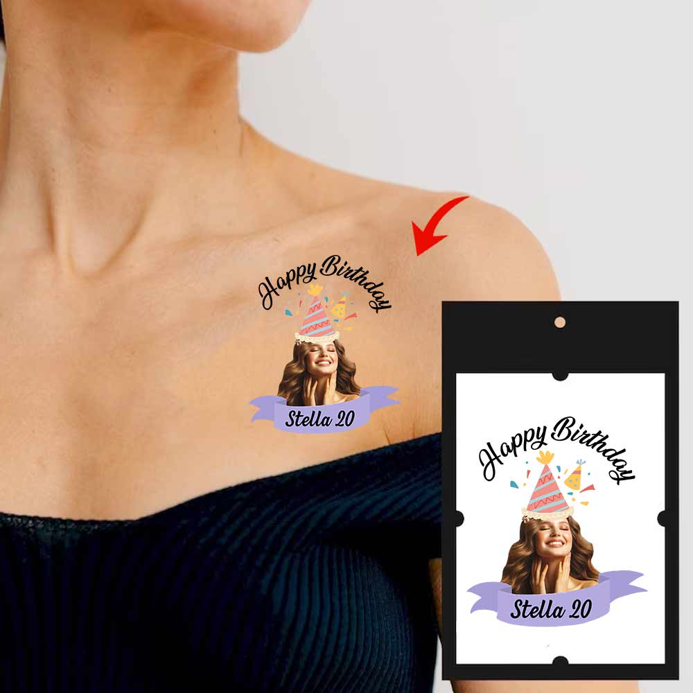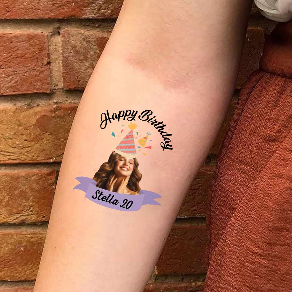 Wish Birthday, Custom Photo And Text Temporary Tattoo, Personalized Tattoo, Fake Tattoo