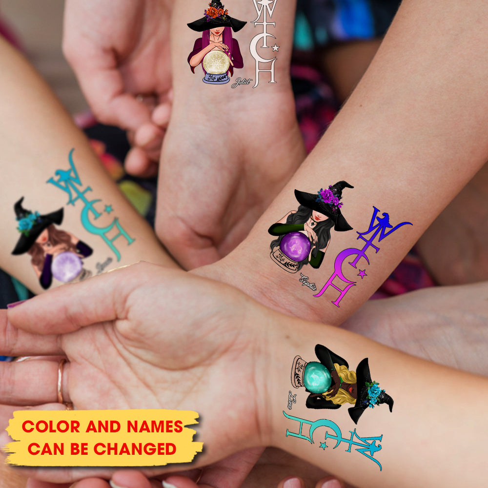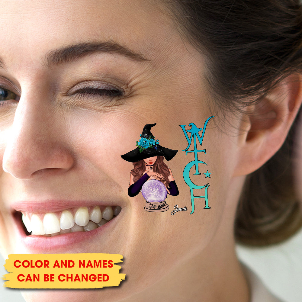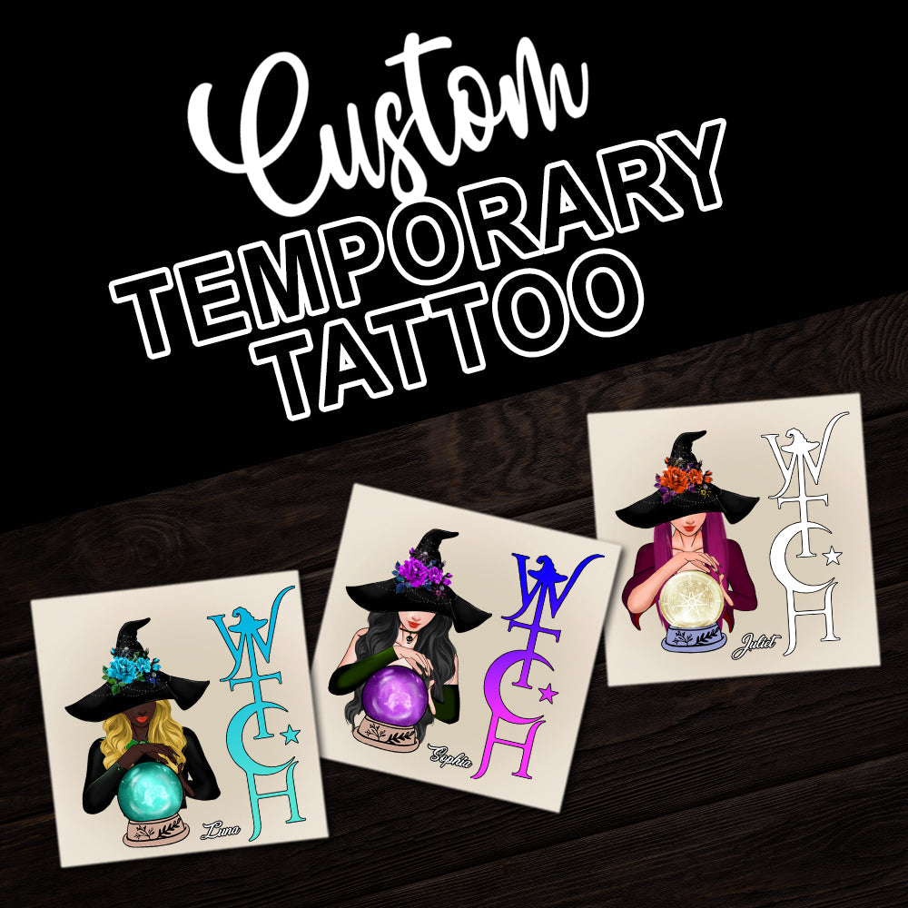 Witch And Ball, Custom Face Photo And Texts Temporary Tattoo, Personalized Tattoo, Fake Tattoo