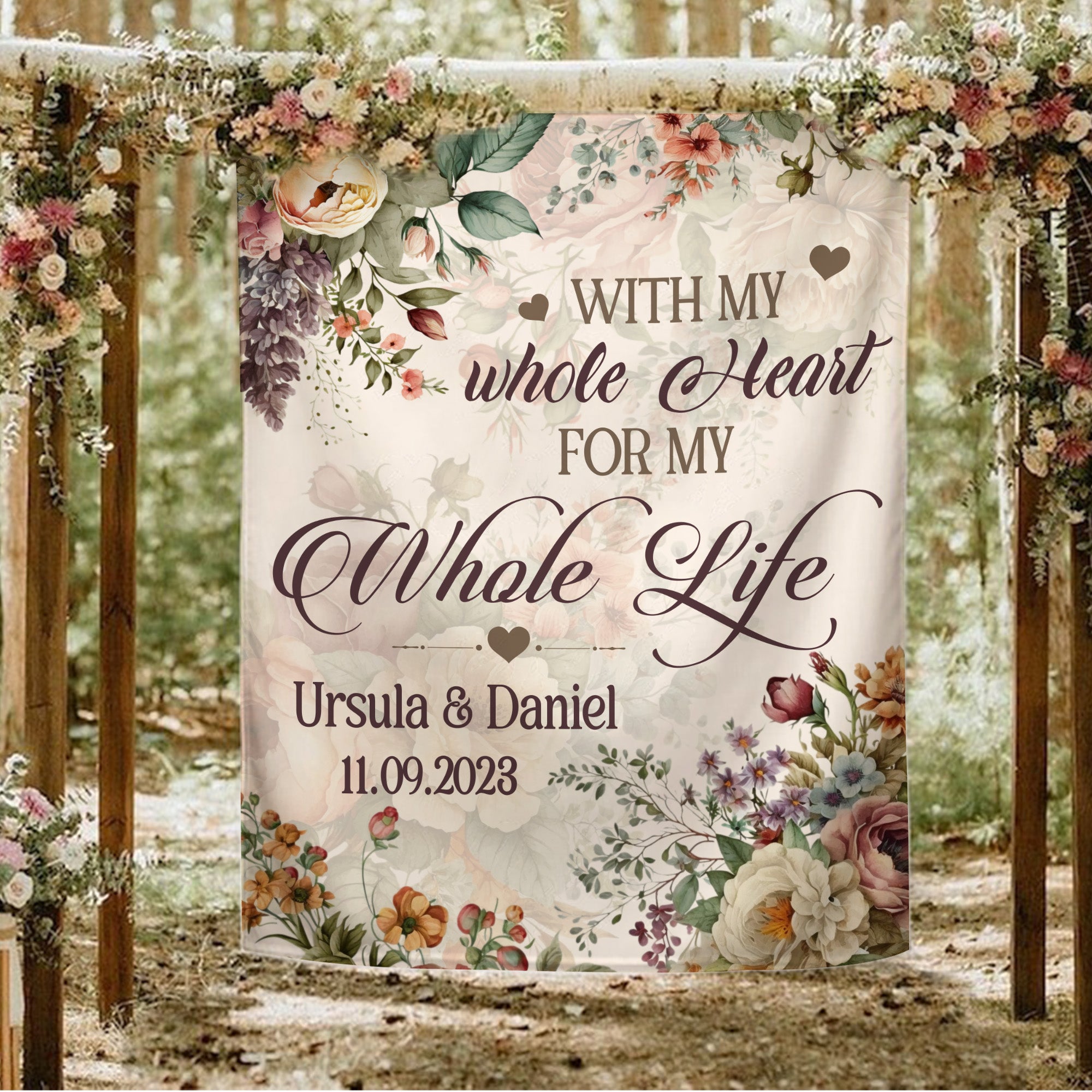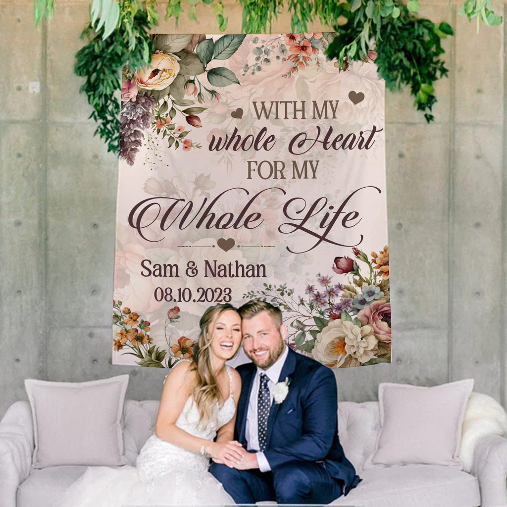 With Whole My Heart For My Whole Life Wedding Decoration Backdrop - Personalized Backdrop